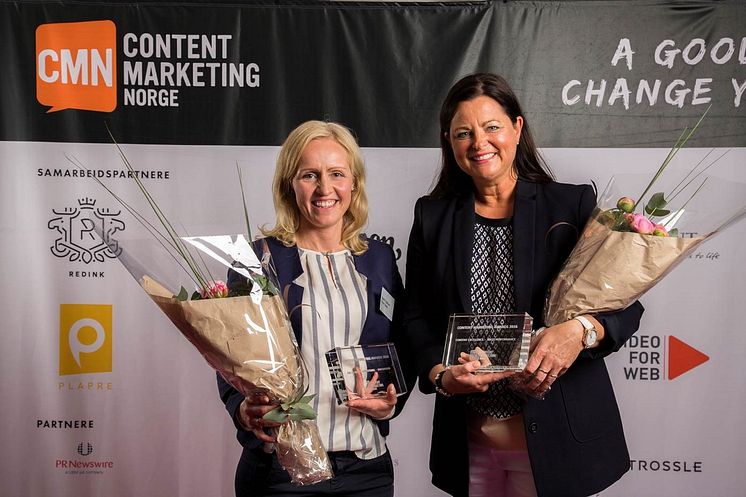 Ingrid R. Mathisen (t.v.) og Ingunn Børresen mottok to priser fra Content Marketing Norge.