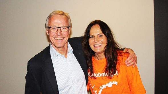 Bildet: Adm. dir. Torbjørn Almlid og leder av Nabolaget, Tina Thorsen, gleder seg til endelig å komme i gang med det nye spillet. Foto: Norsk Tipping